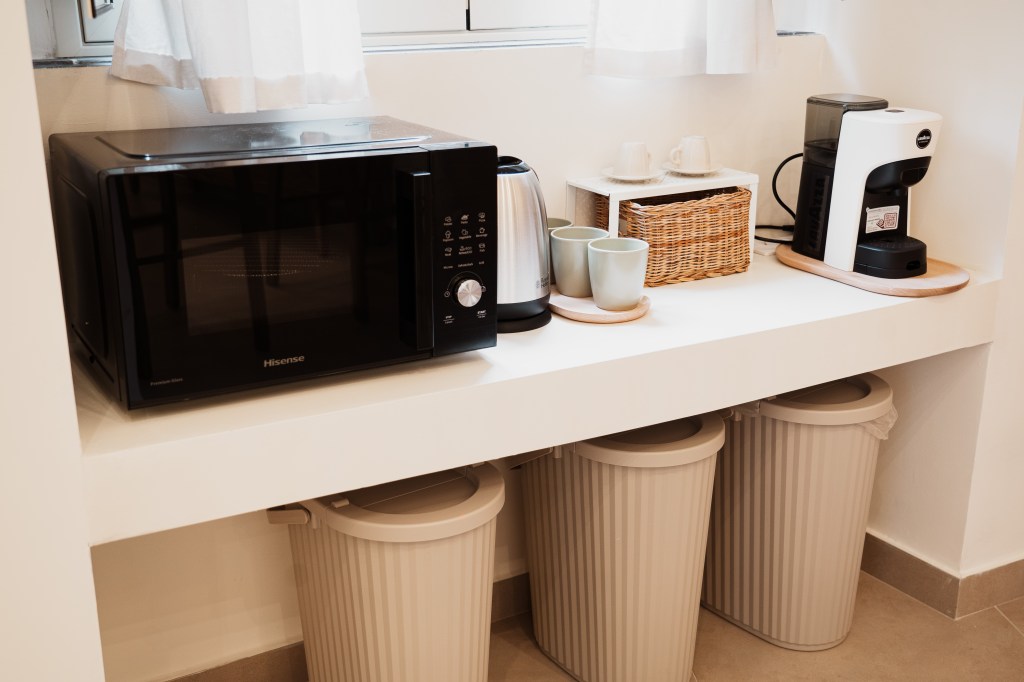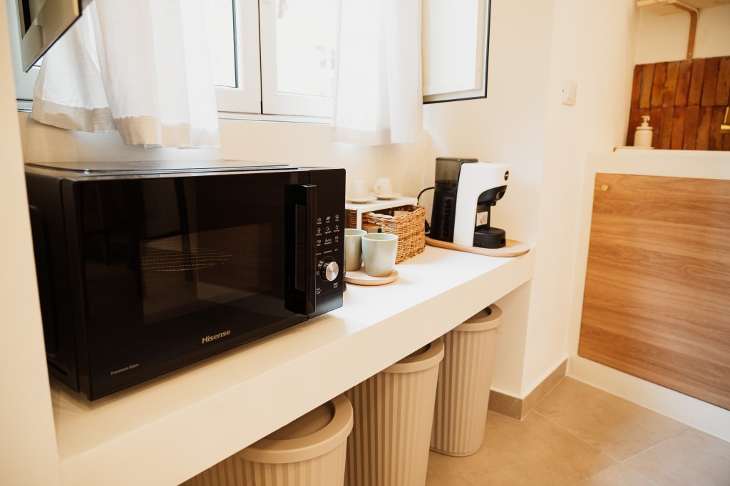 - Cucina attrezzata: microonde, macchina del caffè e utensili essenziali per colazioni e pasti in autonomia.
