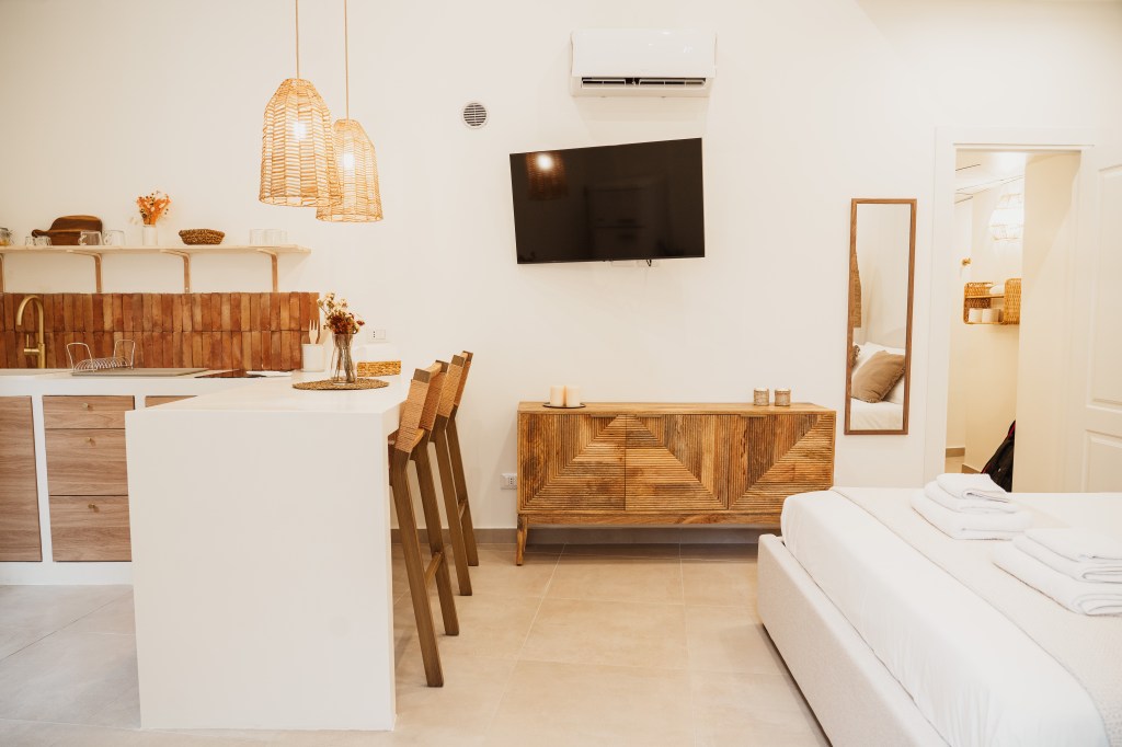 - Stile nature e atmosfera rilassante: colori chiari e dettagli in legno per un ambiente caldo e armonioso.